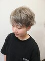 マニッシュ感のあるマッシュショートにハイトーンカラーと酸性パーマをON。ハイトーンで動きのあるスタイルを楽なスタイリングで楽しめます。