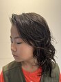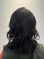 サイドにツーブロックを入れて耳にかけやすく。トップは緩めに流れるように、ハチ下をウェーブが出るようにややしっかり目にパーマ。