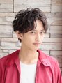 スパイラルパーマを効かせたセンターパートマッシュ