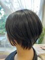 ふんわり、丸みのあるグラボブショートスタイル。フェースラインや襟足は馴染みよくカットしています。