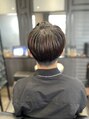 横がツーブロック、後ろは刈り上げで、薄くなりすぎない様に整えました。前髪は立ち上げたことがなかったそうでやってみると気に入って帰って頂けました!ドライヤーの温風冷風を交互に当てることで立ち上がりを作れるのでぜひお試しを♪