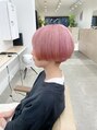 ホワイトピンク/襟足刈り上げショートボブ/ハイトーンカラー