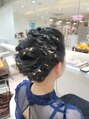 襟足が短かめでしたがロープ編みを重ねてアップ風に仕上げました