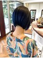 髪質、生え方、骨格に合わせた前下がりボブをベースに襟足から耳中線まで刈り上げました。軽い質感を出す為ベースを崩さない程度スライドカットで質感を調整しました。