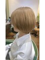 ハイトーンのショートボブ。カットは、丸みが特徴的なショートボブなので、伸びてもまとまりやすいです。顔周りも作ってあるので、耳にかけてもかわいいです。カラーは、ブリーチ必須のミルクティーベージュです。ギャルっぽいのが好きな方におすすめです。
