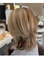 レイヤースタイルにカットしてカラーはグレージュカラーをベースにハイライトを入れて伸びても目立たないように白髪ぼかしをしてます 立体感と動きが出るのでヘアスタイルを楽しめると思います