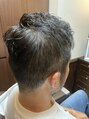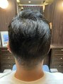 厚めの刈り上げ バリカンなし 地肌が白く見えないようにカット WAXでナチュラルに左に流すようにスタイリング