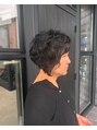耳上スッキリ!ツーブロックアシンメトリー&刈り上げショート!!帽子から出る髪の毛がパーマでボリュームもあるので、オシャレにかぶれます◯お似合い!可愛い!!オシャレママです♪