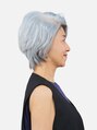 グレイヘアを素敵に!ふんわりボリュームのショートボブは頭の形を綺麗に見せてくれます♪クセを活かして上げ流しな前髪は動きがでて華やかな印象♪グレイヘアを活かした少し淡めなカラーで、個性もプラス。