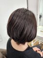 ショートボブのデザインに暗めのアッシュグレーカラーで柔らかく見せています