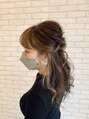 高めの位置から濃いブルーのインナーカラーを入れています。ベースの色をアッシュブラックの色にしてかっこよく仕上げました!