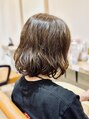 明るめのカーキの色をのせて毛先に軽くカールがつくパーマをかけました