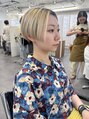 襟足は刈り上げサイドの内側もツーブロックにしています。コンパクトにするためにしっかり軽さも入れています。毛先はぱつっと感を出しています。ハイトーンがカワイイ!石田指名をクリックしご予約お待ちいたしております。