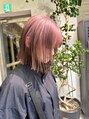 ピンクベージュハイトーンカラーデザインカラールーツカラーボブ
