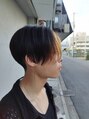 ストレートでシャープにキマるようスタイリングしたセンターパート。前下がりの前髪とポイントカラーで色気のあるスタイルです。