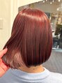 - カット+ブリーチなしWカラー(ハイトーンカラー/ボブ/ブリーチなしカラー/赤髪)