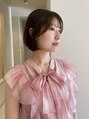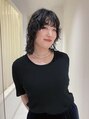 ぱつっとラインを出した、シンプルな黒髪ボブ。カラーリングは光に透けるとグレー味のあるニュアンスカラーに仕上げています。スタイリング楽ちんです!