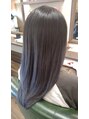 クールなウルフカットの印象にあわせて、ブルーグレージュ系カラーで透明感とクール感をよりアップさせてます