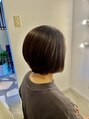 襟足はスッキリと切り、トップにランダムな動きを出したショートスタイルです!カラーはお肌に馴染みやすいパールベージュ☆明るめにカラーさせていただいているので、伸びてきた白髪が目立ちにくいかと思いますよ。