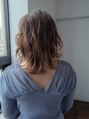 全体的にエアリー感のあるスタイルです。重くなりすぎないようにブローで根本をしっかり起こし26ミリのコテで全体をゆるふわに巻いています。また、前髪もスライスをとって縦巻きして全体のバランスをとりました。