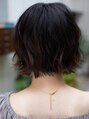 首半分くらいの長さにカットしレイヤーのないスタイル。しっかり毛量をへらしパーマをかけることで、動きのあるスタイルに。基本外ハネになるようにかける為お家でもラクに再現が可能。バングもワンカール。カラーも同時がお勧め。