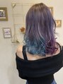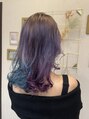 全頭ブリーチしてベースと毛先で3色に分けてオンカラー