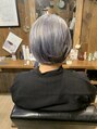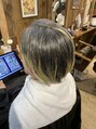ワンブリーチでアイスブルーをオン。色落ちは少しくすんだブロンドカラーになります!白髪ぼかしも思い切って明るくするのも有りかもしれません!紫シャンプーを使って頂けると長持ちしますよ~!