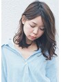 ナチュラルなミディアムレイヤーの毛先にゆるめのワンカールパーマをかけてバングは長めで大人クールなスタイル