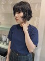 ショートからボブに伸ばしてる途中。襟足はボブに近づくようにギリギリまでcut。ショートの名残りのレイヤーを活かして、顔周りなども楽しめるようにパーマを。