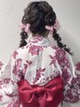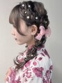 浴衣のイベント向けのヘアセットです!後ろにお花を作っていて、その下にりぼん付いてるの可愛すぎます♪全体的にふわふわにしているのがポイントです♪