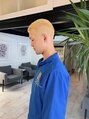 思いっきり刈り込んだボウズスタイルに抜きっぱなしブリーチ^_^頭皮が敏感な方は一度ご相談ください^_^染みない範囲で最適なデザインをご提案致します^_^