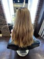 根本リタッチブリーチ。毛先はブリーチをせずに根元のみブリーチをして、流してオンカラー。