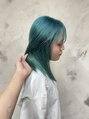 エメラルドグリーンこの夏目立ちたい方にオススメです!個性カラー良い感じです!酸性ストレートでより艶感を、ブリーチしていても可能な薬剤を使っております!