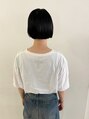 襟足ギリギリのセンターパートの重めボブ酸性ストレートでクセをとって自然なストレートにしスタイリングが楽になるようにしています