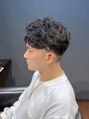 ツーブロックで刈り上げたサイドとバック、くせ毛を活かしたカール感がポイントのセンターパートスタイル。ウェット系のスタイリング剤がおすすめです。オールバックにもアレンジできます。直毛の方はデザインパーマで動きを出しても◎。
