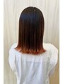 全体低明度のブラウン、毛先はブリーチ毛をオレンジにした裾カラー。ブリーチの根元伸びた人、オシャレにブリーチを活かしながら伸ばしていきたい人にお勧めです。※ちなみに根元は縮毛矯正をしていますがブリーチ履歴の方は要相談です