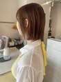 切りっぱなしボブでプツンとラインのあるボブスタイル☆柔らかいオレンジベージュで肌なじみも良くしてます◎