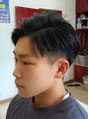 横と後ろを5ミリバリカンで刈り上げをつなげて、全体的に束感を作ったツーブロックです。前髪はアップバングにしてトップは高さと束感を作って左からかるく流しています。 スタイリングの所要時間は1分かからないくらいになります。