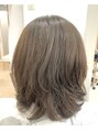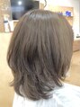ミディアムレイヤーのワンカールパーマ。根元を縮毛矯正で整え、毛先はワンカールでふんわりと。ツヤとまとまりのある柔らかい質感に。