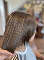 人気の顎下1センチボブ♪巻いたり外はねも両方できて収まり良い長さです(^^)カラーは透明感あるグレージュ♪