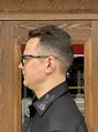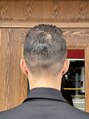 クセ毛を活かし、何も付けずオールバックに仕上げました。周りはスッキリ刈り上げスタイル。