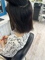酸性ストレートに合わせて、美フォルムうるツヤミニボブを組み合わせました。ストレートが柔らかい質感なのでボブにとても合います。スタイリングにスプレーワックスをつけると収まりが良くなります!