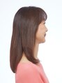 白髪が伸びてきても目立ちにくい明るめベージュブラウンで、肌のトーンもアップします。前髪を作り分け目が出ないようにすることでトップに高さがでます!
