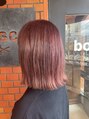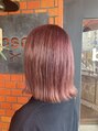 カットは自然に外ハネになる位のミィディアムボブです。カラーはブリーチを全体にしてから、ラベンダーピンクを乗せました。