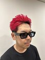 フェードカットの上部のみをブリーチし、あえて根本も黒で残し立体感や抜け感を作りました。色はビビッドレッドカラーをでオシャレ感増し増しに♪