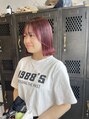 チェリーピンクカラー暖色系艶感切りっぱなし×エアストレート