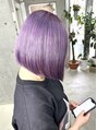 ブリーチ1.2回でできるラベンダーカラーにパツッと前下がりのボブに、、、