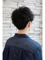 簡単スタイリングが可能なパーマスタイル!マッシュベースにソフトツーブロックを入れ、トップのレイヤーで動きをつけやすいようにする。作りすぎない自然なカールで男を上げる!ミックスパーマで子供っぽくなりがちなマッシュヘアにこなれ感・好感度をUP!