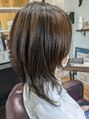 レイヤーたっぷりミディアムヘア。毛先だけワンカールしています
