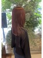 髪質、生え方、骨格に合わせワンレンをベースに毛先に軽さがでる様質感調整をしました。ブリーチ無しカラーです。ボンドカラー8トーンマット、アッシュ、シルバーライラックブロンドを調合しました。